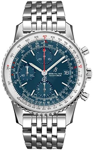 - With Manufacturer Serial Numbers - Swiss Made - Aurora Blue Dial - Index Hour Markers - Date Feature - Chronograph Feature - Large Central Chronograph Seconds Hand - 30 Minute Counter Sub-Dial at 12 O'Clock - 12 Hour Counter Sub-Dials at 6 O'Clock- Small Seconds Sub-Dial at 9 O'Clock- Slide Rule Feature - 42 Hour Power Reserve - Self-winding Automatic Chronometer Movement - Breitling Caliber 13 - Vibrations Per Hour: 28,800 - Jewels: 25 - Guaranteed Authentic - Certificate of Authenticity - Manufacturer Box & Manual - Polished Stainless Steel Case - Polished Stainless Steel Pilot Bracelet- Scratch Resistant Sapphire Crystal - 30 Meters / 100 Feet Water-Resistant - 41mm = 1 5/8" Case, 7" Adjustable Bracelet- Case Weight: 79.40g - Case Thickness: 14.44mm - Inlet Size: 22mm - Bidirectional Rotating Bezel - Luminescent Hands & Hour Markers - Screw Down Case Back - Stainless Steel Deployment Buckle Also Known As Model # A13324 / A1332412 CA02 451A / A1332412-CA02-451A