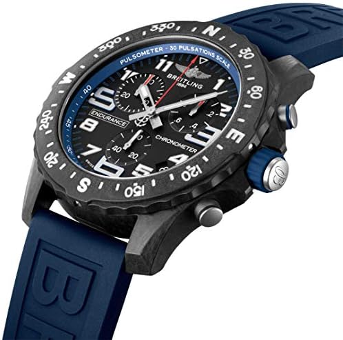 Black dial enhanced by luminous silver-tone hands. Black breitlight (ultralight polymer) case with a blue rubber band. Quartz movement. 100 meters / 330 feet water resistance. Bi-Directional Rotating bezel. Scratch Resistant Sapphire crystal. Solid caseback. Tang clasp. Pull / Push crown. Case size 44 mm. Breitling X82310D51B1S1 Professional Watch.