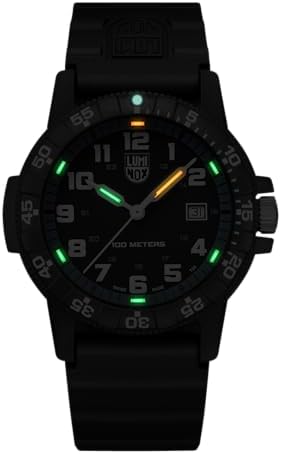 Description The Leatherback Sea Turtle in black-out design impresses with its 39 mm Carbonox(TM) housing and up to 100 metres water resistance. The black dial is equipped with the proven Luminox Light Technology lighting system. "Always Visible", energy-independent, and for up to 25 years. luminox The key feature of any Luminox watch is that the time can be read at any time under all possible conditions, whether on or under the water, on land or in the air. The energy-independent Luminox Light technology (LLT) guarantees optimal night readability, up to 25 years, 7 days a week. Most other watches use luminous colour, which must be charged from a light source and quickly loses luminosity. Alternatively, a push button system is available in which the battery operated lighting is activated with a switch. However, Luminox uses its own technology, which was previously reserved to the military and gives Luminox watches an outstanding market position. Each Luminox watch is equipped with tiny gas lights (borosilicate glass capsules) on the hands, hour indexes and bezels, if required. These light up permanently - without the touch of a button or light charging of the watch. Thanks to this unique technology, the time of Luminox watches can always be read at a glance, regardless of the external conditions. This unique technology is made in Switzerland with Swiss precision movement Details: Manufacturer number: XS.0324. EAN: 7611382637734. Target group: unisex. Drive movement: quartz. Dial colour: black / blue. Watch glass: mineral glass. Housing material: carbon (Carbonox). Housing colour: black. Case width: 39 mm. Base width: 19 mm. Strap material: polyurethane. Strap colour: black. bracelet