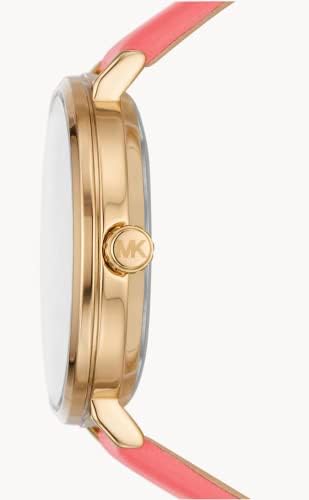 Michael Kors Three-Hand Grapefruit Leather Watch MK2964 has a case size of 40MM is part of the ADDYSON platform. It features a leather strap in pink, a case water resistance of 3 ATM, and a case made of alloy.