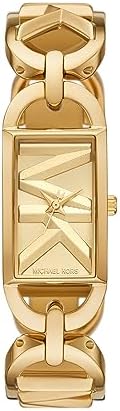 Michael Kors Watch from the MK Empire collection for women. 3 ball quartz movement, made of stainless steel with a rectangular case with a polished gold finish. The dial is gold in colour. Case diameter: 30 mm. Case Thickness: 8mm Lug spacing: 4 mm. The strap is made of stainless steel with a polished finish. Band Color: Gold Band Type:Chain Closure: bracelet with removable links. The water resistance is 5 ATM. Reference is: MK7406
