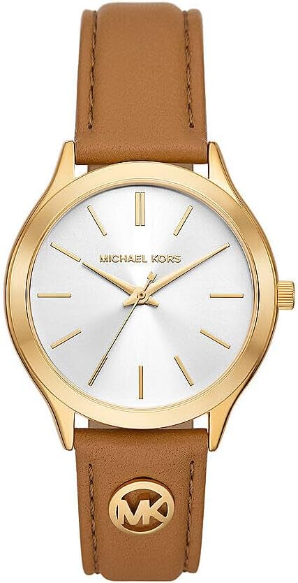 Model number: MK7465 Brand: Michael Kors Mechanism: Quartz Case color: Gold Plate color: White Watch band color: Brown Watch band material: Leather Diameter of the watch case: 38 mm