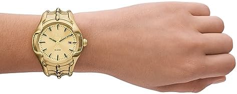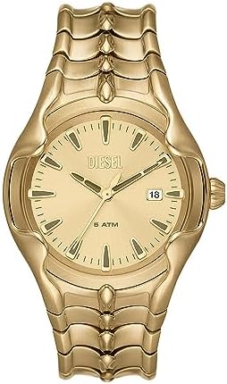 Diesel's 44mm Vert watch features a gold sunray dial, three-hand date movement and gold-tone stainless steel bracelet.