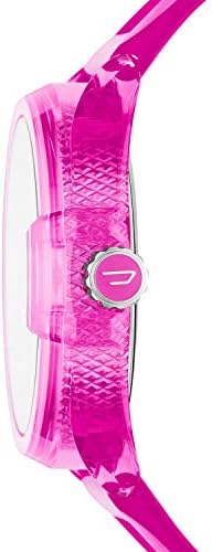 Pink dial enhanced by luminous silver-tone hands. Pink resin case with a pink resin band. Quartz movement. 50 meters / 165 feet water resistance. Fixed bezel. Scratch Resistant Mineral crystal. Solid caseback. Tang clasp. Pull / Push crown. Case size 44 mm x 13 mm. Band 22 mm x long. Diesel DZ1929 MS9 Watch.