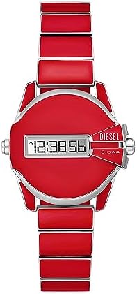 Diesel's 32mm Baby Chief watch features a positive display dial, digital movement and red enamel and stainless steel bracelet.