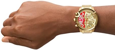 48mm case, 22mm band width, Quartz movement with chronograph analog display, imported Round stainless steel case, with a gold dial Water resistant up to 50m: Wearable while swimming in shallow water