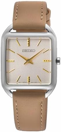 Seiko SWR089P1 Women's Quartz Stainless Steel Watch with Leather Strap. Stainless steel casing: the stainless steel case is robust and gives the watch an elegant, silver-coloured shine. High-quality leather strap: the high-quality leather strap ensures maximum comfort on the wrist. Thanks to the classic pin buckle, the strap length can be easily adjusted to the individual wrist circumference. Scratch-resistant hardlex glass: the specially hardened Hardlex mineral glass is much more resistant to scratches and bumps than conventional mineral glass. Waterproof wristwatch: the watch is waterproof up to 5 bar, i.e. at a depth of up to 50 metres. It can therefore easily withstand accidental water splashes when washing hands, rain or sweat. 26 x 6.4 mm