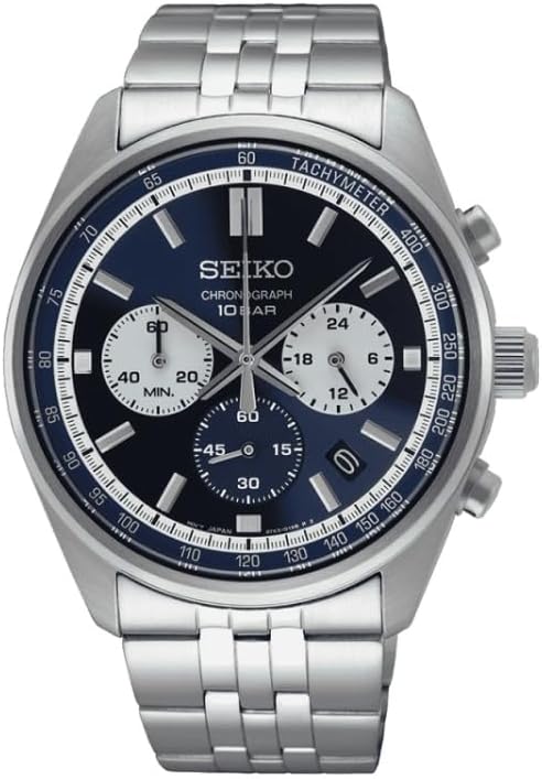 Brand Name Seiko Model number SSB427P1 Part Number SSB427P1 Item Shape Round Clasp Spring push buckle Case diameter 39 millimetres Case Thickness 11 millimetres Band width 22 millimetres Band Color Silver Dial color Blue Calendar No Calendar Special features Chronograph Display Type Analog