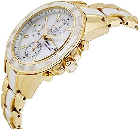 If you like to follow the latest trends in fashion and accessories, buy Women's Watch Seiko SNDX02P1 (Ø 38 mm) at the best price. Band Color: White Gold Dial colour: white. Strap material: steel. Closure Type: Deployant Waterproof: 10 ATM. Crystal: Sapphire Features: Chronograph Box contents: Includes branded case. Movement Type: Quartz Watch Case Color: Gold Watch Case Material: Stainless Steel Watch case diameter: Ø 38 mm Gender: Women.