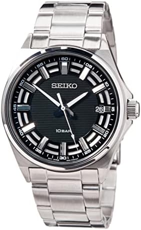 Seiko SUR505P1 Men's Quartz Watch Stainless Steel with Metal Strap. Stainless steel casing: the stainless steel case is robust and gives the watch an elegant, silver-coloured shine. High-quality stainless steel strap: the high-quality stainless steel bracelet with its flat folding clasp with safety pusher ensures maximum comfort on the wrist. Thanks to the new strap shortening system from Seiko (New Link Removal System), you can easily adjust the strap length to your individual wrist circumference at home. Scratch-resistant hardlex glass: the specially hardened Hardlex mineral glass is much more resistant to scratches and bumps than conventional mineral glass. Waterproof wristwatch: the watch is waterproof up to 10 bar, i.e. at a depth of up to 100 metres. It can therefore easily withstand accidental water splashes when washing hands, rain or sweat. Diameter 40.0 x 10.0 mm Environmentally friendly light coating: the environmentally friendly LumiBrite luminous coating specially developed by Seiko improves the readability of the dial in the dark without pressing a button.