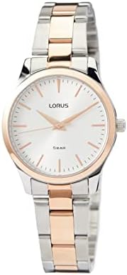 Lorus RRX80HX9 Women's Quartz Watch Gold Plated with Metal Strap. Bi-colour casing: a rose gold plating on the bezel provides a special contrast to the rest of the case, which is made of robust, silver-shiny stainless steel. Metal strap: the high-quality metal bracelet with its flat folding clasp with safety push button ensures maximum comfort on the wrist. Waterproof wristwatch: the watch is waterproof up to 5 bar, i.e. at a depth of up to 50 metres. It can therefore easily withstand accidental water splashes when washing hands, rain or sweat. Diameter 28.0 x 7.0 mm