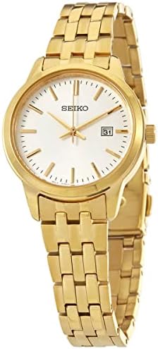 Seiko Women's Quartz Watch Stainless Steel with Metal Strap SUR412P1. Case with gold plate: the watch casing is made of robust stainless steel. A gold plating ensures the high-quality, elegant look and gives the case an elegant shine. High-quality stainless steel strap: the high-quality stainless steel bracelet ensures maximum comfort on the wrist with its flat folding clasp with safety push. Scratch-resistant hardlex glass: the specially hardened Hardlex mineral glass is much more resistant to scratches and bumps than conventional mineral glass. Waterproof wristwatch: the watch is waterproof up to 5 bar, i.e. at a depth of up to 50 metres. It can therefore easily withstand accidental water splashes when washing hands, rain or sweat. Diameter 30.0 x 7.0 mm
