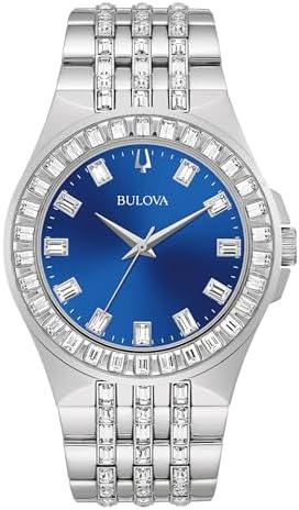 The crystal phantom from bulova is a statement timepiece designed to stand out. Featuring a three-hand quartz movement and stainless steel case, with 89 authentic crystals. It is finished with a bold blue dial and stainless steel bracelet and it is designed for those who are looking to make a bold fashion statement style, evoking a luxurious look.