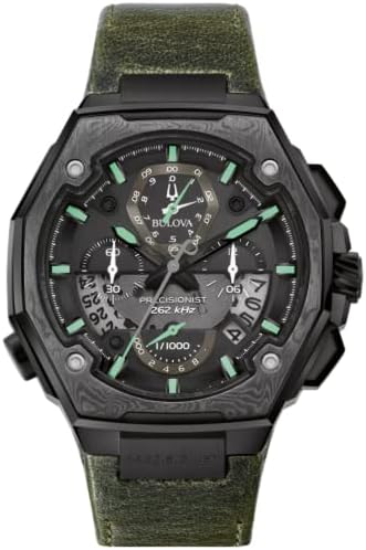 Marking the 10th anniversary of the Precisionist, the Precisionist X Special Edition is a celebration of unparalleled accuracy. The special edition timepiece features a distinctive black stainless steel case with a gray Damascus steel top ring insert. The black dial features a calendar window and a view into the proprietary Precisionist eight-hand chronograph high-performance quartz movement. The fine green leather strap is complete with a deployant buckle. The case features a curved sapphire crystal with AR coating, screw down case back, and water resistance to 50 meters. The Precisionist X Special Edition arrives in an elegant presentation box with plaque.