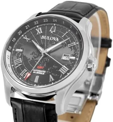Bulova With a history spanning over more than 140 years, Bulova has been one of the leading companies in the industry and has been considered a pioneering pioneer and American classic since the beginnings of 1875. From the moment Joseph Bulova opened his first business in Maiden Lane in Manhattan - then the centre of the New York jewellery industry - his unique vision revolutionised timekeeping. He founded the company on the solid foundation of quality and craftsmanship-with a passion for innovation and perfection. So Bulova changed the industry through authenticity and American inventiveness. Bulova has remained true to its tradition - the company masters the classical art of time keeping and is always ready for the future. A Bulova brand watch is not just a watch - it is a piece of history. Details: Manufacturer number: 96B387. EAN: 7613077590805. Target group: men. Movement drive: automatic. Dial colour: black. Watch glass: sapphire glass. Case material: stainless steel. Case colour: silver. Case width: 43 mm. Lug width: 22 mm. Strap material: genuine leather. Band Color: Black Strap clasp: pin buckle. Water resistance: 3 ATM/bar splash-proof Functions and features: date display, GMT