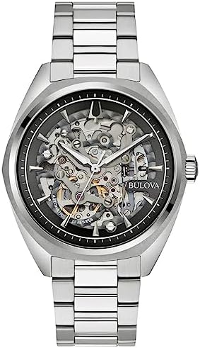 New to Bulova's Classic collection, this automatic watch features a sleek and sophisticated design, showcasing the brands attention to detail. From a stainless-steel case and bracelet with a push-button release, to its black full-exhibition dial and caseback, this timepiece is perfect for any occasion.