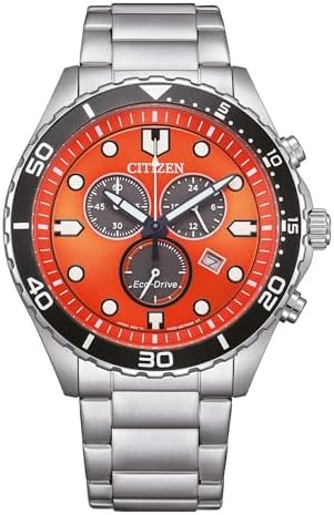 Brand Name Citizen Model number AT2560-84X Part Number AT2560-84X Item Shape Round Band Color Silver Dial color Orange Calendar Date-Month Special features Chronograph Display Type Analog-Digital