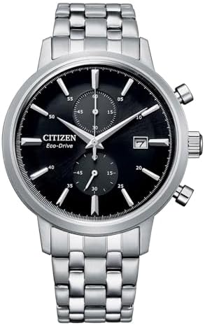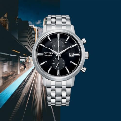 Brand: Citizen Item number: CA7060-88E Model name: Eco Drive Display: chronograph Watch glass: mineral glass Watch strap: stainless steel Band Width:20mm Watch strap colour: silver. Watch strap surface: matte and glossy. Maximum wrist circumference: 22 cm Minimum wrist circumference: 16 cm (the inner diameter of the watch can be gradually reduced to this value) Dial colour: black. Case material: stainless steel Casing surface: matte and glossy. Case height: 11.8 mm Case diameter: 42 mm Watch weight: 123 g Water resistance: 5 bar Functions: Date 210 days power reserve. Battery discharge indicator. Stopwatch: max. 60 minutes, 1/5 sec. Citizen has successfully developed the Eco Drive System as the first watch manufacturer in the world - a timepiece powered by light. Because the watches store the excess environmentally friendly energy in a small battery they receive via the dial, they still work even if they do not get light for 240 days. Thanks to the many and idea-rich models, Citizen has something for everyone. Delivered in Citizen packaging