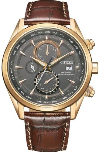Introducing the CITIZEN Eco-Drive Global Radio Controlled Watch, designed for sophisticated men who appreciate precision and style. The stainless steel case with rose gold plating exudes a refined elegance, while the calf leather strap adds a touch of luxury. With a 43mm case size and 10-bar water resistance, it offers durability and versatility. The sapphire glass ensures exceptional clarity and scratch resistance. The deployment clasp with a push button provides a secure and comfortable fit. Powered by Eco-Drive Light technology, this watch harnesses the power of any light source, eliminating the need for battery changes. Its impressive H800 caliber boasts a 10-month power reserve, ensuring reliable timekeeping. This exceptional timepiece features 5 Bands Global Radio controlled timekeeping, Perfex, regular automatic reception function, world time in 26 cities, perpetual calendar, 1/20 second units chronograph, 60-minute timing, 24-hour display, day and date display, power save feature, as well as an insuff
