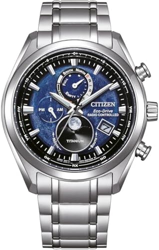 Solar Powered, Radio Controlled, Moonphase, Worldtime, Luminous Hands |