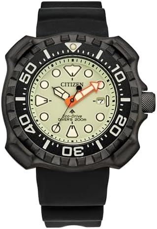This Promaster Diver takes you to the depths of style. Featuring a rugged case in ultra-durable and lightweight Super Titanium with Duratect DLC coating, an easy-to-see, fully luminous dial and a durable, black polyurethane strap, plus an extension strap, this professional-grade dive watch is water resistant to 200 metres and ISO compliant. Other advanced functions include a one-way rotating elapsed time bezel with a lock and power reserve indicator. Featuring Citizen’s proprietary Eco-Drive technology that’s sustainably powered by any light and never needs a battery, this sporty men’s dive watch is ideal for avid divers and water sport enthusiasts alike.