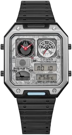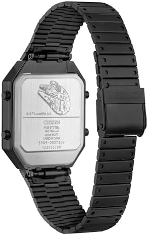 The new Star Wars Millennium Falcon Ana-Digi timepiece from Citizen honours every detail of the iconic starship. This black IP stainless-steel rectangular case watch is packed with features, including dual time and light speed-inspired sub-dials in sleek grey with subtle red accents. The new watch is an update to a previous Ana-Digi model and inspired by an original Citizen analogue-digital watch from the 1980s. This time, we’re introducing sleek screw details on the bezel, a black stainless-steel bracelet in a new tapered style, and a footprint of 33.4mm in width by 45.4mm in length. It also includes the digital time, day, date, and temperature, making it a unique and standout timepiece to add to any collection.