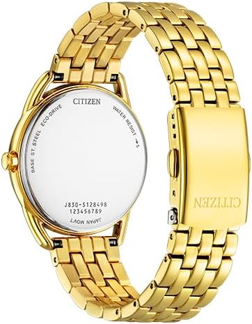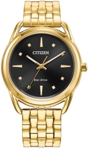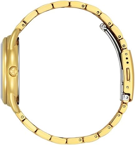 A fresh addition to your watch collection, this Ladies' Bracelet is styled in gold-tone stainless steel with a sleek black dial. Stylish and practical, this 3-hand model features gold-tone markers, mineral crystal and water resistance. Sustainably powered by light with the Eco-Drive technology.