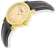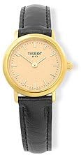 Brand Name Tissot Model number T57612121 Part Number T57612121 Item Shape Round Dial window material type Sapphire Crystal Clasp Tang Buckle Case material Stainless Steel Case diameter 41 millimetres Band Material Leather Band width 18 Band Color Black Dial color Gold Movement Quartz Display Type Analog