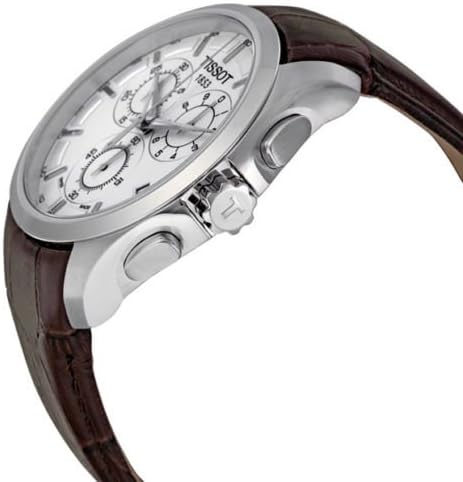 Product Details Product SKU: w-t0356171603100 thickness: 11 mm diameter: 41 mm Colour: White Watch Brand: Tissot watch series: T Sport features bezel: Fixed Stainless Steel Features Water resistance: 30 meters/100 feet movement type: Quartz Band Type: Brown Leather Additional Info TECH INFO: hours, minutes, seconds, calendar, chronograph, TA watch model no: t0356171603100 case material: Stainless Steel Bracelet Clasp: Tang "