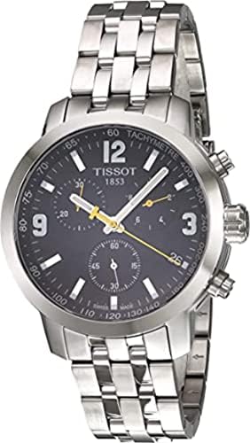 Product Details Product SKU: w-t0554171105700 thickness: 13 mm diameter: 42 mm – View the watch size chart: Silver Tone Watch Brand: Tissot watch series: PRC 200 Chronograph features bezel: Fixed Stainless Steel Features Water resistance: 200 meters/660 feet movement type: Quartz Band Type: Stainless Steel Additional Info garantíun: 2 unño garantíun Additional Info TECH INFO: Chronograph, Date, Hour, minute, second watch model no: T0554171105700 case material: Stainless Steel Bracelet Clasp: Deployment Watch Style: Casual Case Shape: Round Dial Color: Black Dial Type: Analog Dial Markers: Index: Luminiscents Hands and Markers Calendar: Date Display in the 4 in point position Crystal: Scratch resistant sapphire watch label: Switzerland made Case Back: Solid Three subdials: 60 second, 30 minute and 1/10 of a second crown: Screw Down band length: 8.5 inch band width: 19 mm "