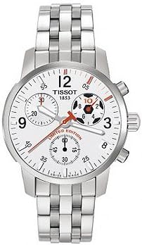 Brand Name Tissot Model number T17188632 Part Number T17188632 Item Shape Round Clasp Tang Buckle Case diameter 41 millimetres Case Thickness 12 millimetres Band width 18 Band Color Silver Dial color White Special features Chronograph Movement Swiss Quartz Display Type Analog