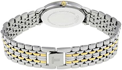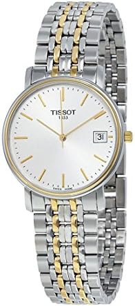 Gold-tone with steel case & bracelet. White dial. Date. Swiss quartz movement. Sapphire crystal. Water resistant 100 meters. Case 34mm. Deployment buckle.