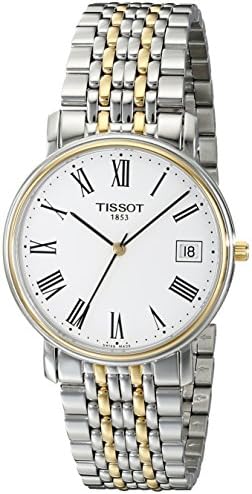 Two-tone Stainless Steel case and bracelet.Silver dial.Fixed bezel.Scratch Resistant Sapphire crystal.Deployment clasp.Swiss Quartz movement.34mm case diameter.Water resistant to 30m / 100ft.