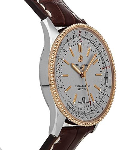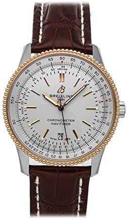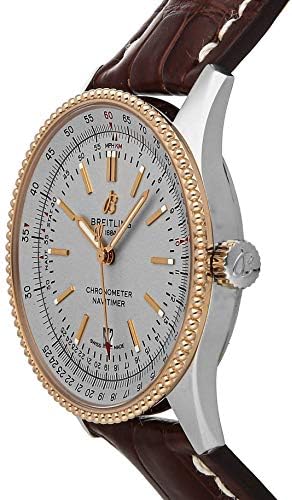 Breitling Navitimer Automatic (U17326211G1P1) self-winding automatic watch features a 41mm stainless steel case with an 18k rose gold bezel surrounding a silver dial on a brown alligator strap with a stainless steel tang buckle. Functions include hours minutes seconds date and slide rule.   Founded in 1884 by Leon Breitling the company was conceptualized as a manufacturer of counters and chronographs for industrial and scientific purposes. In less than a decade it became apparent that Breitling had become a “hit” because of its innovation design and functionality. Some of the company’s most notable clients include the American armed forces and major international airlines.