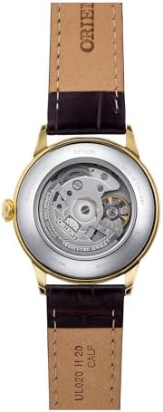 Orient Japanese watch company renowned for its excellence and reliability. The Orient Classic collection never goes out of style. Essential simplicity that runs through generations with ease, because the classics don't need to change. Eternal for a reason. The Orient Bambino is a beautifully crafted 38mm watch, perfect for any occasion. With its simple and elegant design, this watch is sure to impress anyone who sees it. Classic men's watch with 38mm yellow gold stainless steel round case, mineral glass. Chocolate brown leather strap with pin buckle, antique white dial and clear caseback. Mechanical movement with calibre F6724, 22 jewels, 3 ball display and date calendar. Accuracy of +25/-15 sec per day, manual and automatic winding. Water resistant (small splashes and hand washing, no shower)