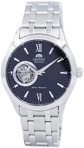 The best of both worlds. An exemplification of watchmaking quality and modern design, the watches from the Orient Contemporary collection offer elegance for special moments and versatility for everyday life. Open Heart is ORIENT's famous skeleton or "open heart" dial. Casual men's watch with round silver grey stainless steel case (39mm diameter), black dial, push crown, clear case back and stainless steel strap with fold-over clasp with push buttons. Mechanical movement with 3 ball display, calibre F6T22. Equipped with 22 jewels, it has a daily accuracy of +25/-15, manual and automatic winding. 5 ATM water resistant (not suitable for swimming)