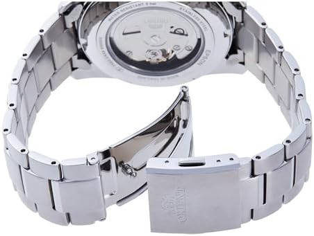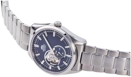 The best of both worlds. An exemplification of watchmaking quality and modern design, the watches from the Orient Contemporary collection offer elegance for special moments and versatility for everyday life. Semi-skeleton design (open heart) at 9 o'clock and the small second function at 6 o'clock. The dial is more three-dimensional and interesting, and is perfectly protected by sapphire crystal. Men's casual watch with round silver grey stainless steel case (42mm), sapphire crystal, clear caseback and matching strap. Blue Dial Fold over clasp F6222 24 jewels mechanical movement with date calendar and 3 ball display. Daily accuracy of +25/-15 and manual winding. Automatic operation. 5 ATM water resistant (not suitable for swimming)