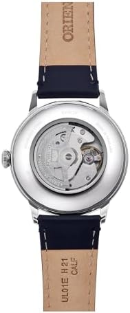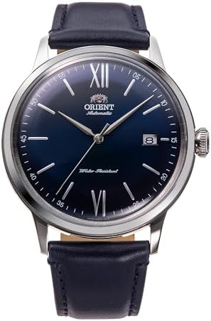 Orient Japanese watch company renowned for its excellence and reliability. The Orient Classic collection never goes out of style. Essential simplicity that runs through generations with ease, because the classics don't need to change. Eternal for a reason. Elegance is simplicity, and simplicity is one of the hardest things. This new version of the legendary Bambino Classic family features a dial with subtle indexes including the 6 and 12 in Roman numeral, and alpha balls. Classic men's watch with 41mm silver grey stainless steel round case, mineral glass and clear caseback. Blue leather strap with pin buckle. Elegant blue dial. Mechanical movement with calibre F6724, 22 jewels, 3 ball display and date calendar. Accuracy of +25/-15 sec per day, manual and automatic winding. Water resistant (small splashes and hand washing, no shower)