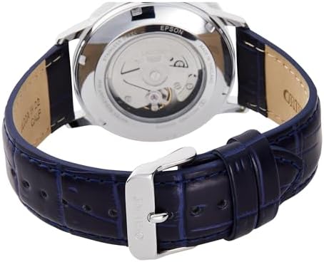The best of both worlds. An exemplification of watchmaking quality and modern design, the watches from the Orient Contemporary collection offer elegance for special moments and versatility for everyday life. The Symphony III sports a familiar design but with some subtle modifications, including an upgraded mechanical movement. Men's casual watch, silver grey round stainless steel case, diameter 42 mm, mineral glass, clear caseback. Blue dial, blue leather strap with pin buckle. Mechanical movement with calibre F6722, Ruby 22. 3 ball display with date calendar. Daily Accuracy +25/-15 sec. Manual and automatic winding. 5 ATM water resistant (not suitable for swimming)
