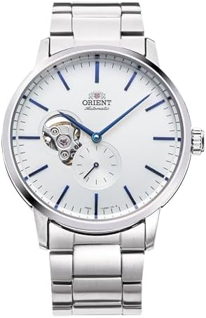 The best of both worlds. An exemplification of watchmaking quality and modern design, the watches from the Orient Contemporary collection offer elegance for special moments and versatility for everyday life. Open Heart is ORIENT's famous skeleton or "open heart" dial. Men's casual watch with round silver grey stainless steel case, 40 mm diameter. Mineral glass and push crown Silver grey stainless steel bracelet with fold-over clasp with buttons. Light grey dial. F6222 24 jewels mechanical movement with date calendar and 3 ball display. Daily accuracy of +25/-15 and manual winding. Automatic operation. Water resistant to 10 atmospheres (swimming and snorkeling)
