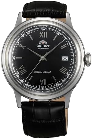 Orient Japanese watch company renowned for its excellence and reliability. The Orient Classic collection never goes out of style. Essential simplicity that runs through generations with ease, because the classics don't need to change. Eternal for a reason. An emblem of elegance and recognizable by its ultra-thin case and retro domed glass, it stands out for comfort, precision and timeless style. Classic men's watch with round silver grey stainless steel case (41mm), mineral glass and push-down crown. Black leather strap with pin buckle and black dial. Mechanical movement with calibre F6724, 22 jewels, 3 ball display and date calendar. Accuracy of +25/-15 sec per day, manual and automatic winding. Water resistant (small splashes and hand washing, no shower)