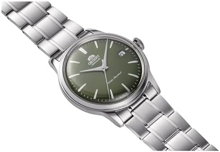Orient Japanese watch company renowned for its excellence and reliability. The Orient Classic collection never goes out of style. Essential simplicity that runs through generations with ease, because the classics don't need to change. Eternal for a reason. The Orient Bambino is a beautifully crafted 38mm watch, perfect for any occasion. With its simple and elegant design, this watch is sure to impress anyone who sees it. Classic men's watch with 38mm silver grey stainless steel round case, mineral glass, clear caseback, push crown Stainless steel bracelet with folding clasp and olive green dial. Mechanical movement with calibre F6724, 22 jewels, 3 ball display and date calendar. Accuracy of +25/-15 sec per day, manual and automatic winding. Water resistant (small splashes and hand washing, no shower)