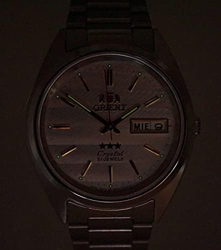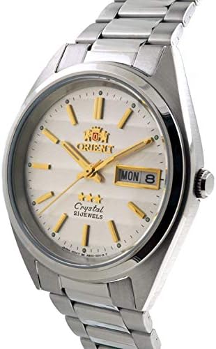 Characterized by its understated look, Orient Tri Star makes it suitable for casual as well as for business occasions. The case is made of stainless steel and houses the Orient mechanical movement of 21 jewels. It operates at a frequency of 21,600 semi-frequencies per hour and offers a day-date display at the 3 o'clock position. On a full wind, the watch can operate for 40 hours. The elegance of this model is highlighted by the steel bracelet, which perfectly matches the case design. The watch has a water resistance of 30 meters. Do remember to limit the contact with water splashes. Thanks to the case diameter of 37 mm, it is classified as a smaller, gentleman's or unisex watch.