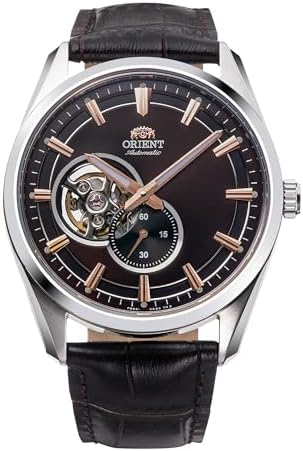 The best of both worlds. An exemplification of watchmaking quality and modern design, the watches from the Orient Contemporary collection offer elegance for special moments and versatility for everyday life. Semi-skeleton design (open heart) at 9 o'clock and the small second function at 6 o'clock. The dial is more three-dimensional and interesting, and is perfectly protected by sapphire crystal. Men's casual watch with round silver grey stainless steel case (42mm), sapphire crystal, clear caseback. Brown leather strap, brown dial, pin buckle. F6222 24 jewels mechanical movement with date calendar and 3 ball display. Daily accuracy of +25/-15 and manual winding. Automatic operation. 5 ATM water resistant (not suitable for swimming)