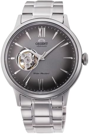 Orient Japanese watch company renowned for its excellence and reliability. The Orient Classic collection never goes out of style. Essential simplicity that runs through generations with ease, because the classics don't need to change. Eternal for a reason. Open Heart is Orient Classic's famous skeleton or "open heart" dial. Classic men's watch with round silver grey stainless steel case (41 mm). Wine red dial, mineral glass, push crown Stainless steel bracelet with folding clasp. Transparent back Mechanical movement with 3 ball display, calibre F6T22. Equipped with 22 jewels, it has a daily accuracy of +25/-15, manual and automatic winding. Water resistant (small splashes and hand washing, no shower)