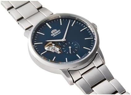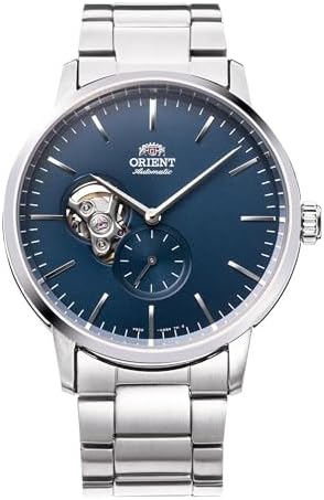 The best of both worlds. An exemplification of watchmaking quality and modern design, the watches from the Orient Contemporary collection offer elegance for special moments and versatility for everyday life. Open Heart is ORIENT's famous skeleton or "open heart" dial. Men's casual watch with round silver grey stainless steel case, diameter 40 mm, mineral glass. Silver grey stainless steel bracelet, blue dial and folding clasp. F6222 24 jewels mechanical movement with date calendar and 3 ball display. Daily accuracy of +25/-15 and manual winding. Automatic operation. Water resistant to 10 atmospheres (swimming and snorkeling)