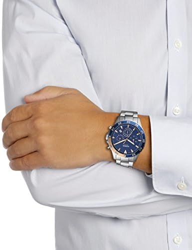 With the Fossil Crewmaster CH3059 chronograph you can keep an overview: the large dial has three secondary scales, which offer you a 24-hour display and a stop function. In addition, the watch has a date display and a minute series. The stainless steel design pleases with clean lines and the cool colour combination of silver grey and blue.