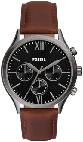 Fossil BQ2814 Fenmore Multifunction Stainless Steel/Leather Watch for Men, 44 mm Size, Gray