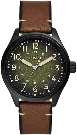 Brand Name Fossil Model number BQ2796 Part Number BQ2796 Item Shape Round Clasp Buckle Case material Stainless Steel Case diameter 42 millimetres Case Thickness 10 millimetres Band Material Leather Band width 20 millimetres Band Color Brown Dial color Green Calendar Date-Week-Month Special features Green Movement Quartz Display Type Analog