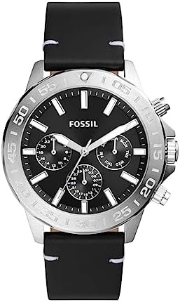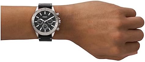Brand Name Fossil Model number BQ2708 Part Number BQ2708 Item Shape Round Dial window material type Glass Clasp Buckle Case diameter 45 millimetres Case Thickness 12 millimetres Band Material Leather Band width 22 millimetres Band Color Black Dial color Black Special features Chronograph Item weight 152 g Movement Quartz Display Type analogue